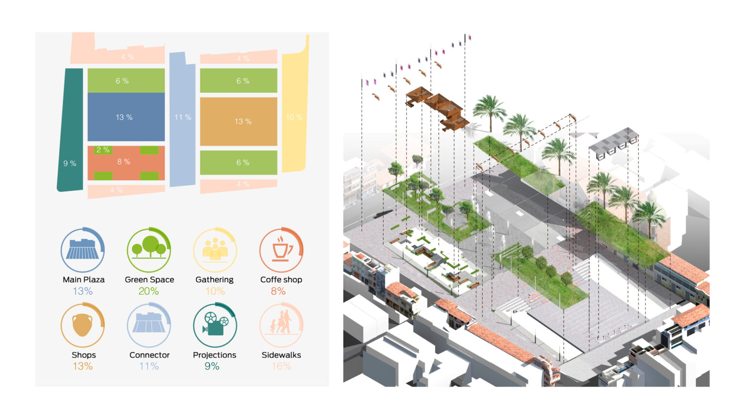 Through this project we were capable to develop a new economic model to Gualaceo. In this project, we evoke its rivers with water foun- tains, and the old market that one day work on that site with an outdoor coffee shop. After years of use, we can say our economic model and cultural space is successful and people are proud of use it because it reflects their identity.
