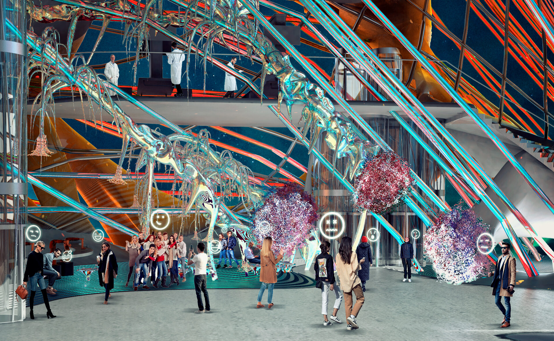 The architecture is organised on the basis of 3 temporal phases, which arise from the analogy of storing, processing and predicting data over time. The first zone is the virtual zone of the past (laboratory), the second is the current virtual zone (data sculptures) and finally there is the virtual zone of the future, which is the final phase of the project.